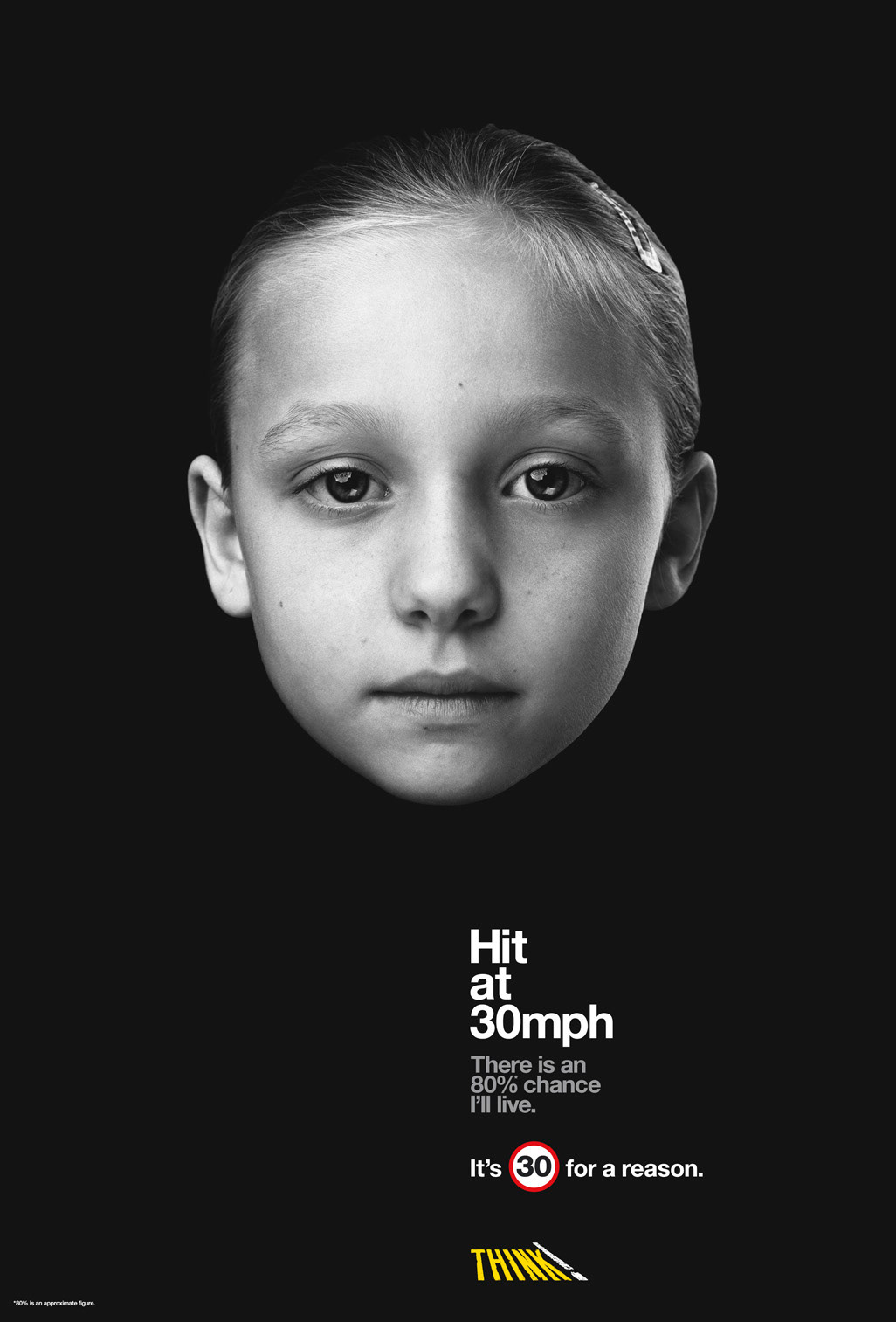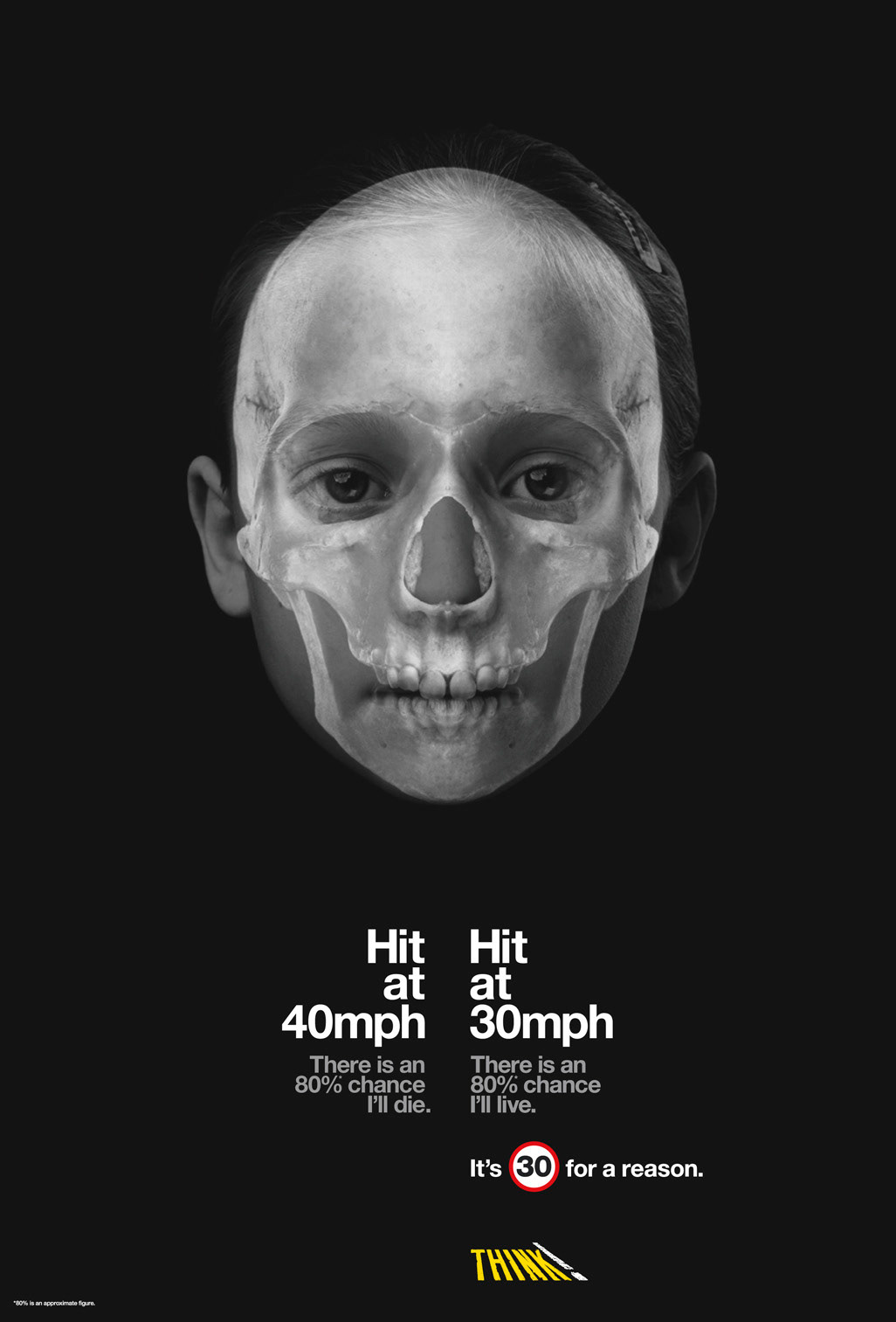 Lenticular poster showing the impact just 10mph can have on surviving being hit bar a car.