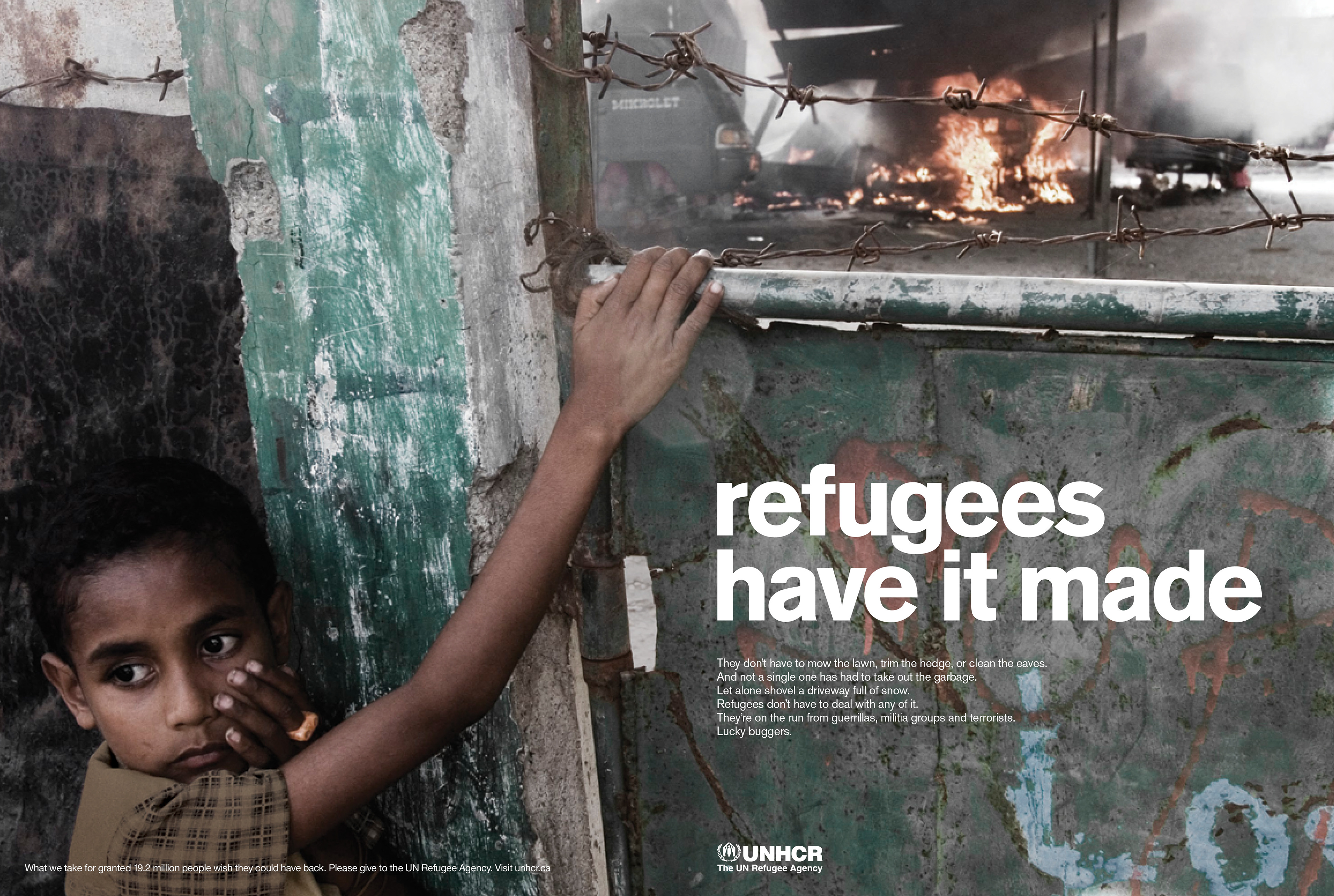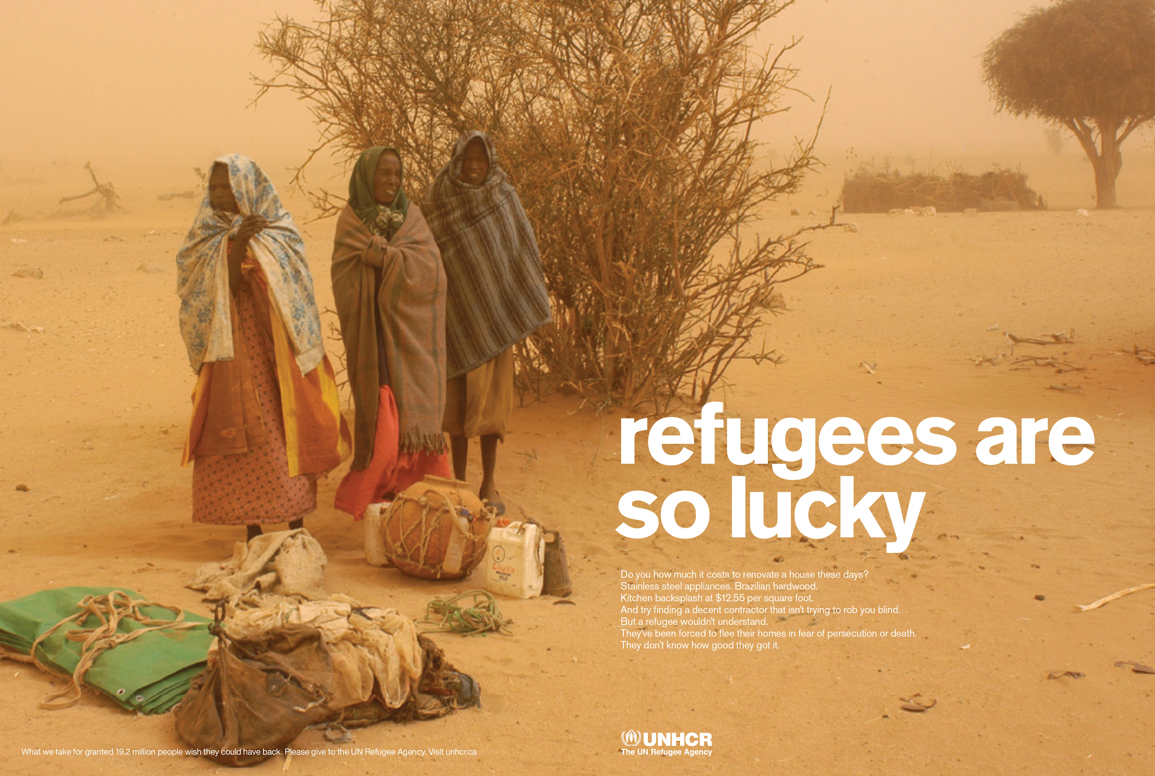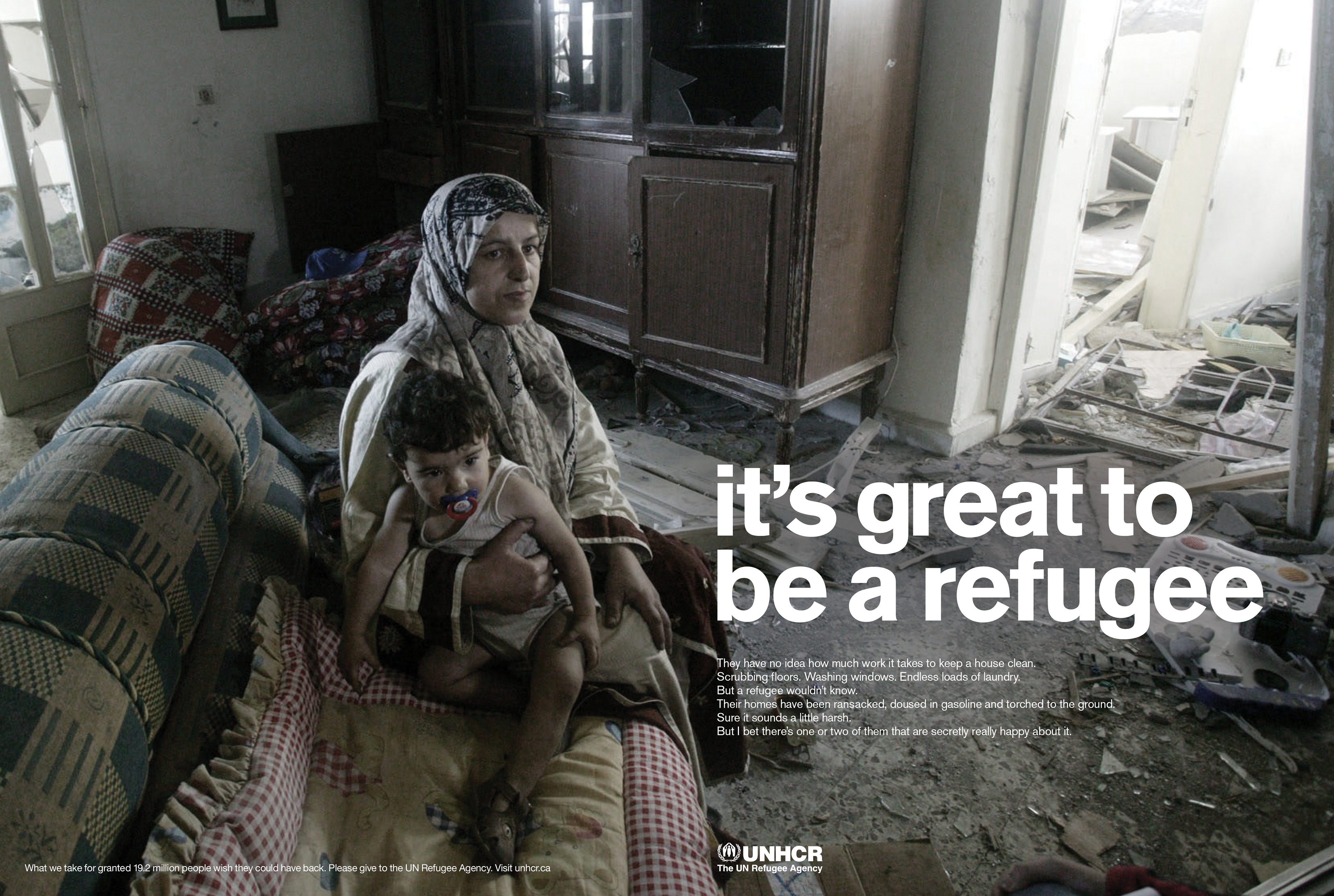 Print campaign for UNHCR using irony to highligt the plight of refugees.