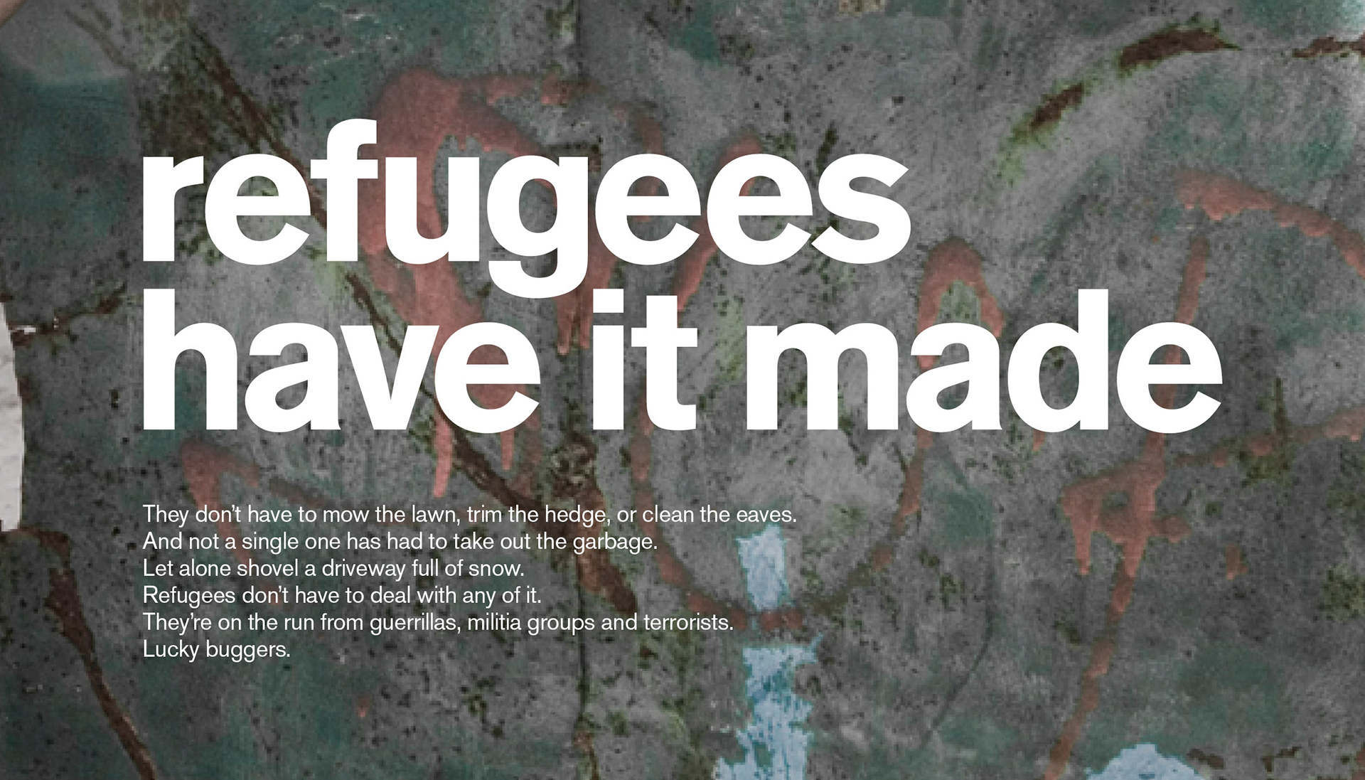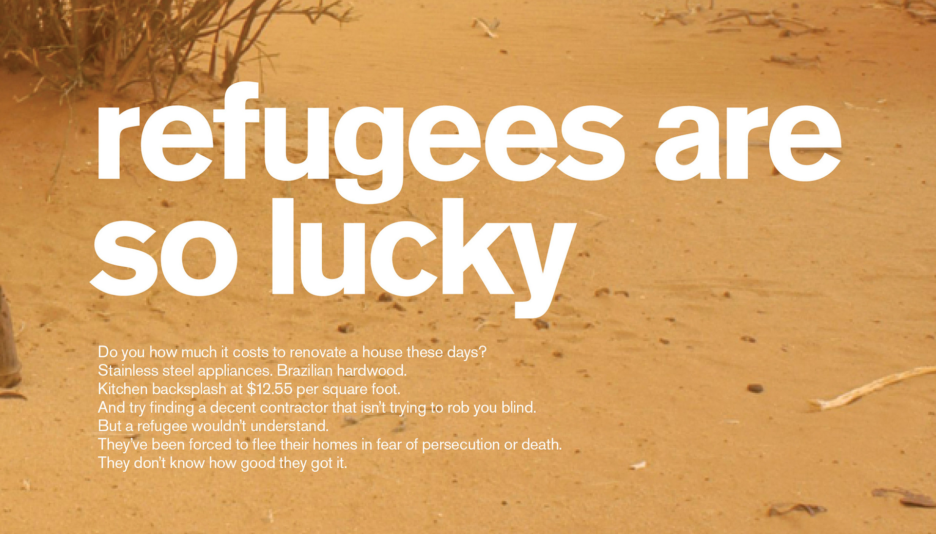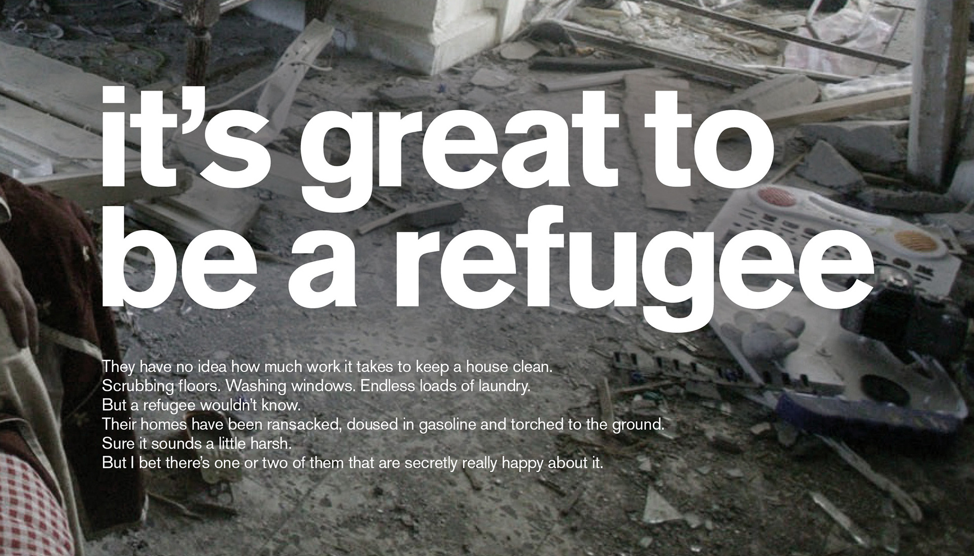 Print campaign for UNHCR using irony to highligt the plight of refugees.